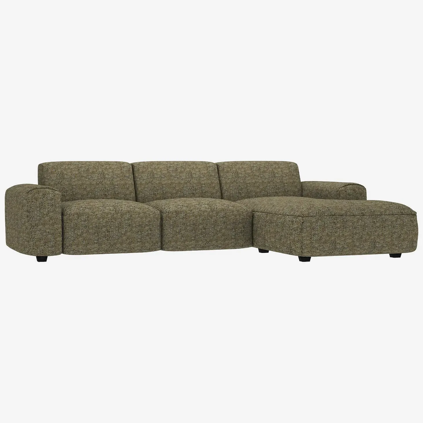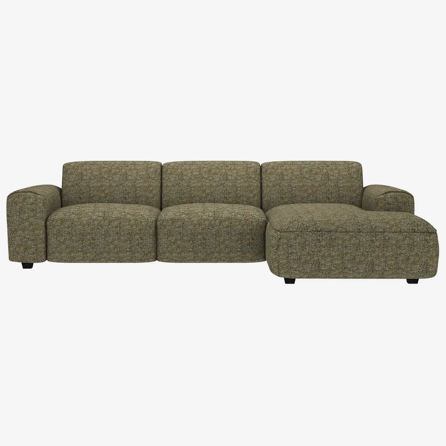 Le canapé d’angle droit Posada en tissu Alba vert orage est un canapé d’une grande élégance. Son design soigné se retrouve dans ses coutures et les finitions en ourlet de ses accoudoirs.