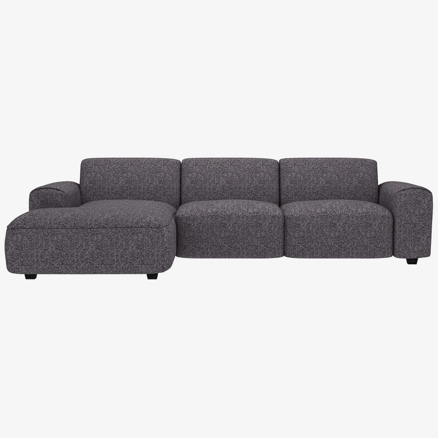 Le canapé d’angle gauche Posada en tissu Lucca bleu zingué est un canapé d’une grande élégance. Son design soigné se retrouve dans ses coutures et les finitions en ourlet de ses accoudoirs.
