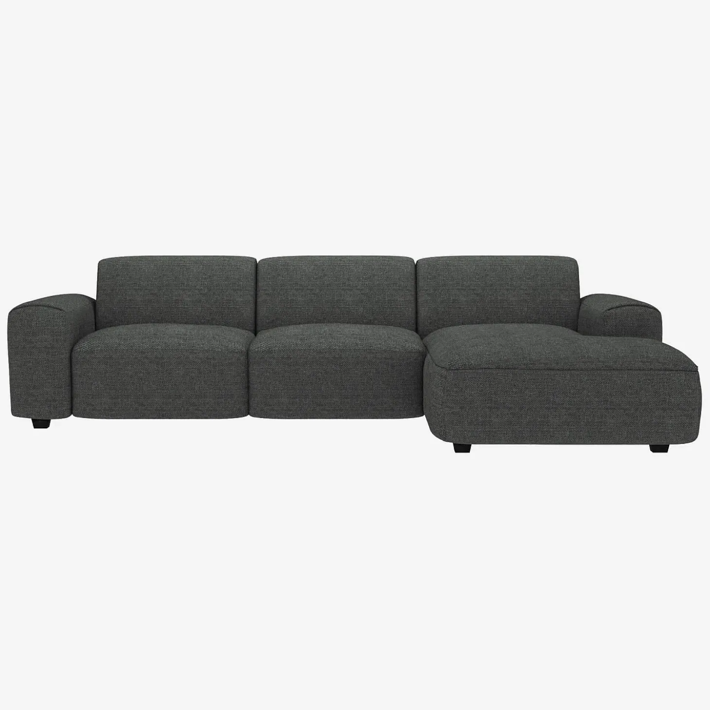 Le canapé d’angle droit Posada en tissu Melina gris ardoise est un canapé d’une grande élégance. Son design soigné se retrouve dans ses coutures et les finitions en ourlet de ses accoudoirs.