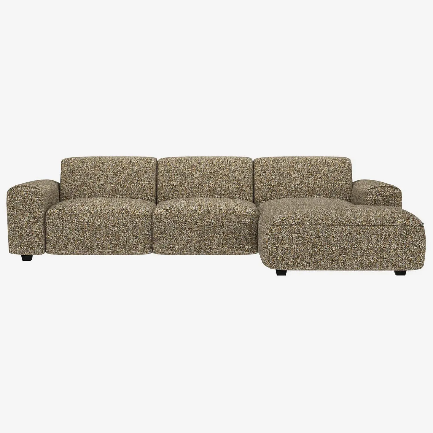 Le canapé d’angle droit Posada en tissu Venezia vert lichen est un canapé d’une grande élégance. Son design soigné se retrouve dans ses coutures et les finitions en ourlet de ses accoudoirs.