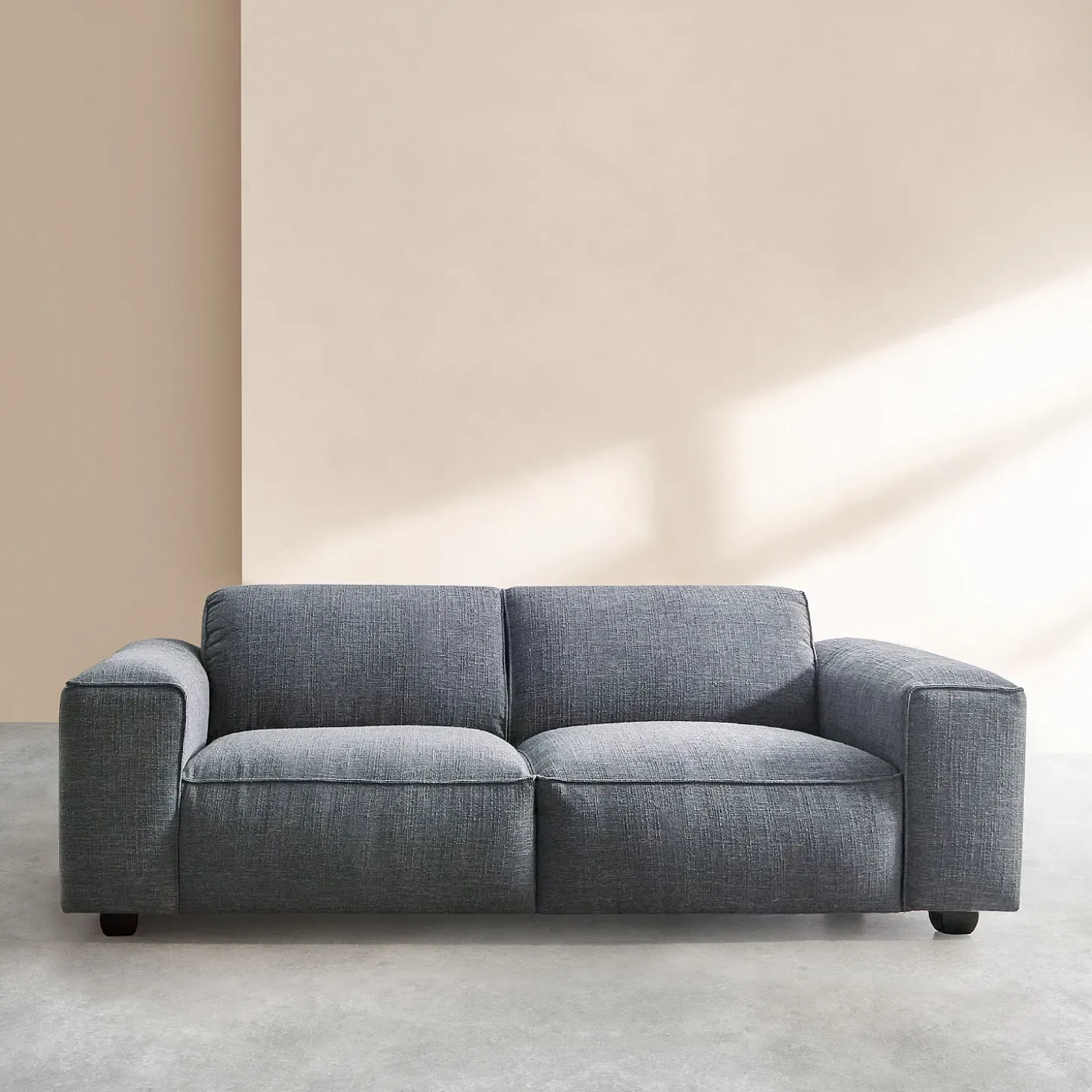 Le canapé 3 places Posada II est habillé d’un tissu Mira en bouclette courte tendance. Ce revêtement apporte un relief subtil et chaleureux, mis en valeurs par un coloris bleu denim apaisant.