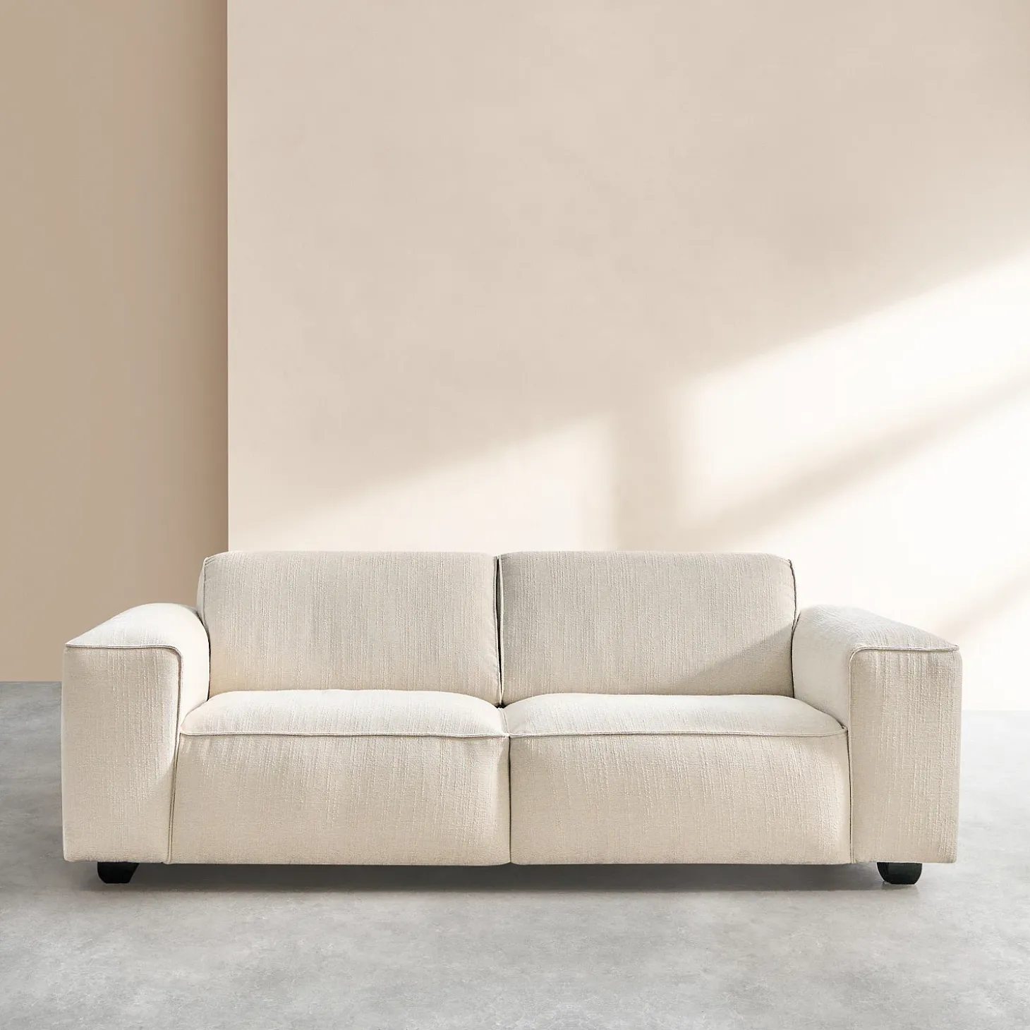 Le canapé 3 places Posada II est habillé d’un tissu Mira en bouclette courte tendance. Ce revêtement apporte un relief subtil et chaleureux, mis en valeurs par un coloris ivoire lumineux.