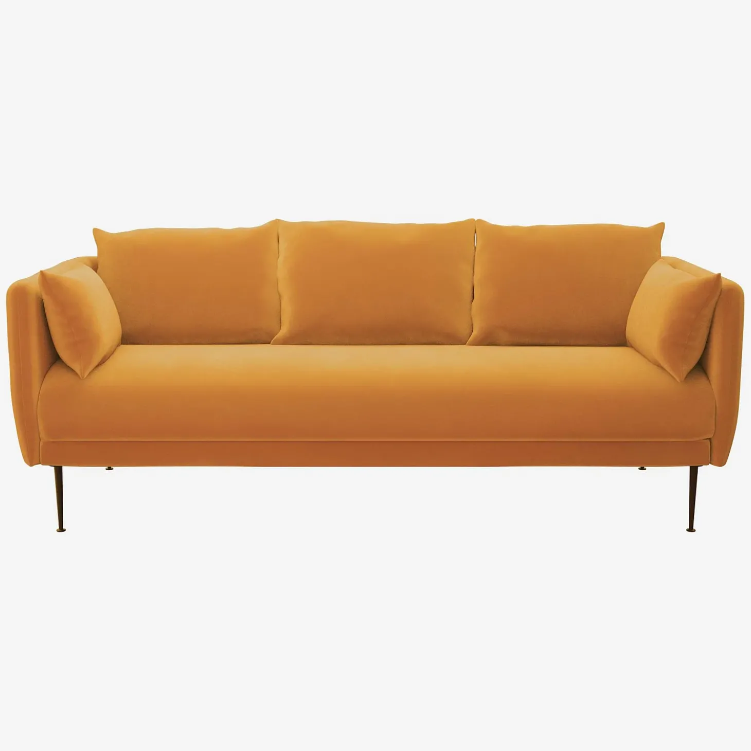 Le canapé 3 places Prague en velours jaune est moelleux et confortable. La touche design est apportée par l’effet matelassé de son dossier. Ainsi, il peut être positionné au milieu d’un salon ou contre un mur.