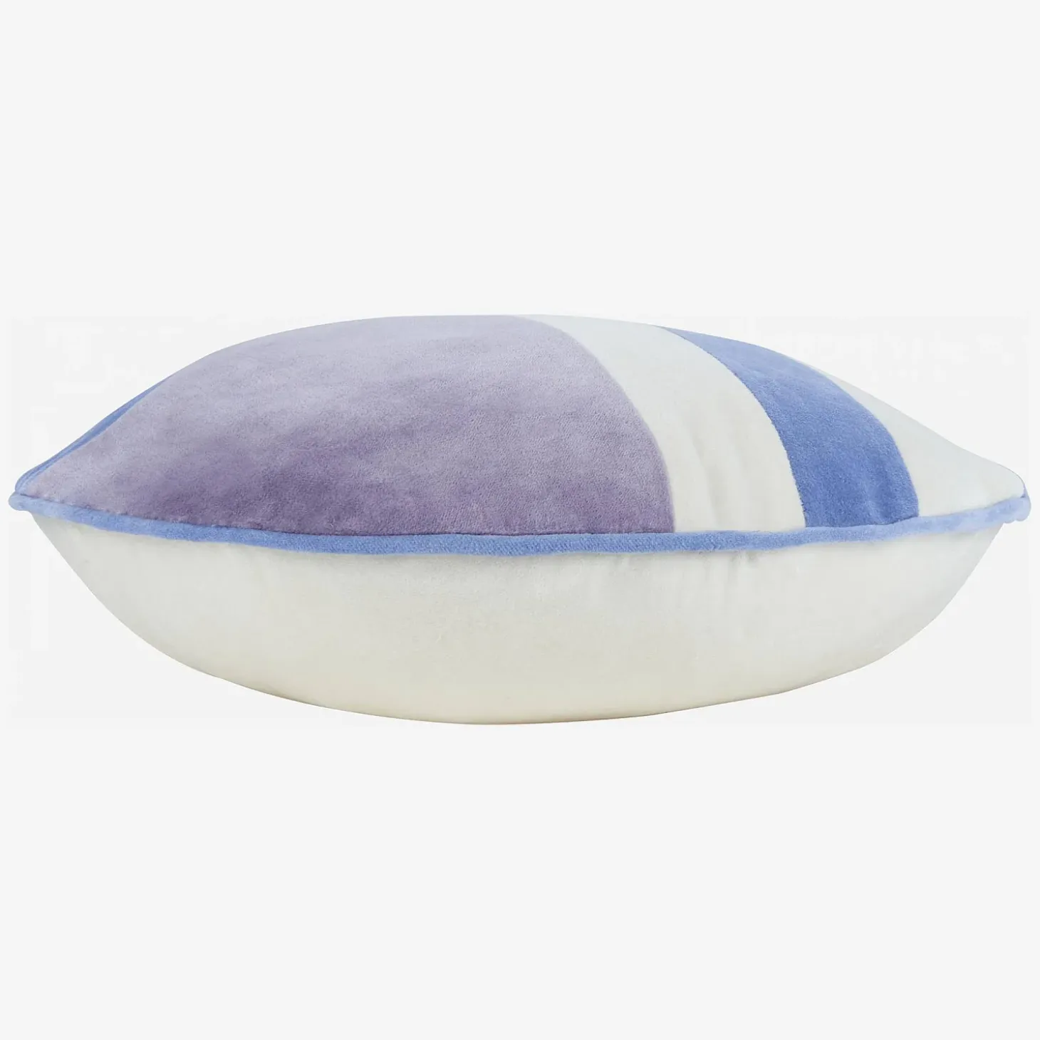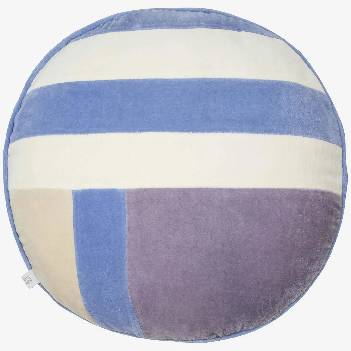 Le coussin rond Prune de couleur lilas mesure 40 cm de diamètre. En velours de coton, ce coussin est déhoussable.