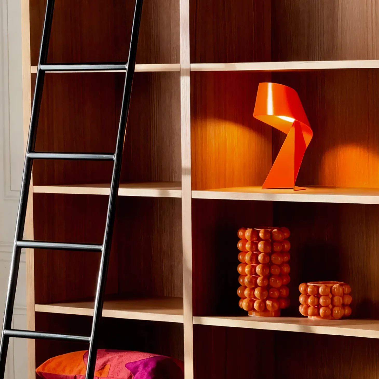 Explosion d’audace, l’Orange Tangerine réchauffe les murs et vibre d’une énergie solaire. Il évoque la liberté et les soirées insouciantes, illuminant l’espace d’un souffle rétro et chaleureux. Chaque détail devient une célébration du design audacieux, tel un coucher de soleil embrasant l’horizon. Après le succès du modèle 35 cm, la lampe Ribbon Orange Tangerine se dévoile désormais dans une élégante version de 50 cm.