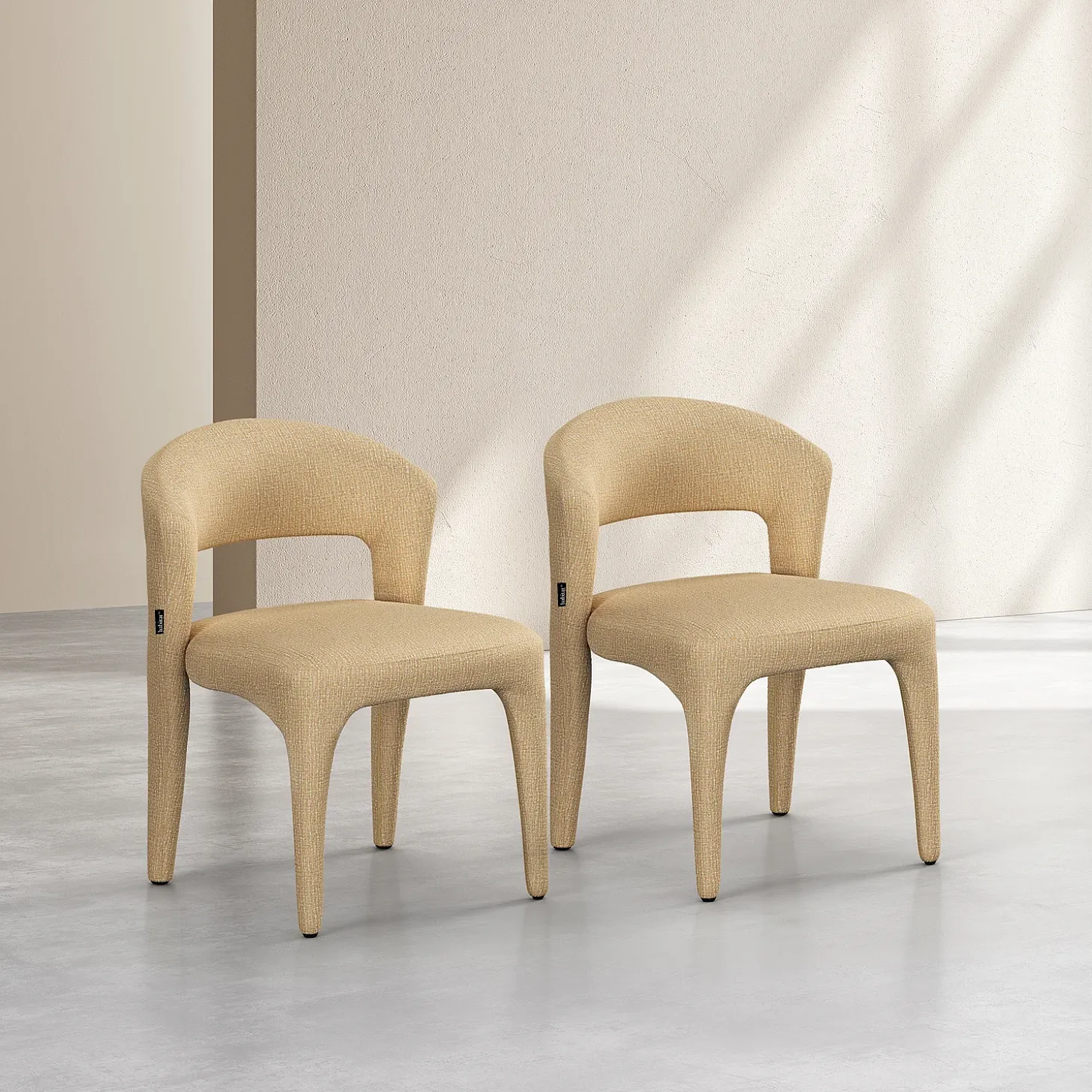 Habillées d’un tissu texturé jaune chiné, les chaises Rimaka séduisent par leur esthétique sobre et leur confort. La silhouette épurée associée à une teinte neutre permet une intégration facile dans un intérieur moderne.