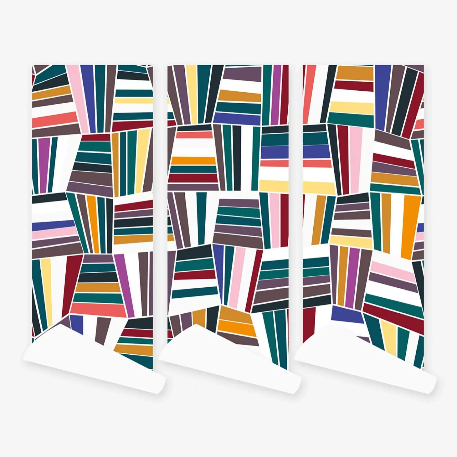 Ce motif géométrique a été conçu comme un panneau afin d’éviter sa répétition. Formé de 3 lés consécutives, le papier Romy s’inspire du mouvement Art Déco et des couleurs d’Arlequin. Le motif Romy mélange des couleurs pastels et des couleurs plus sombres pour un rendu des contrastes.
