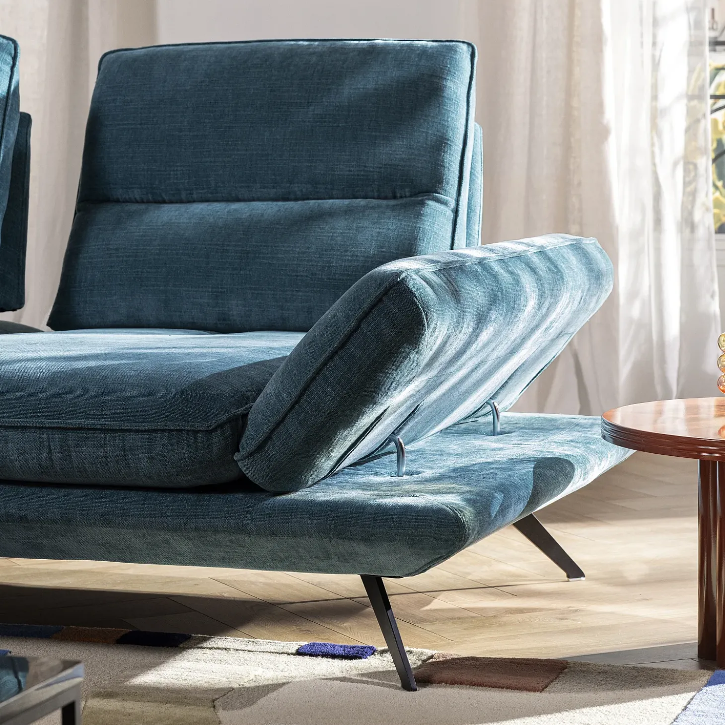 Son confort est entièrement personnalisable, grâce aux mécanismes discrets de ses accoudoirs relevables et de son dossier avance-recule en deux parties indépendantes, offrant une double profondeur en un simple geste. Une multitude d’installations est donc possible grâce à cette amplitude de presque 30 cm, assurant une assise sur-mesure, adaptée à tout besoin.