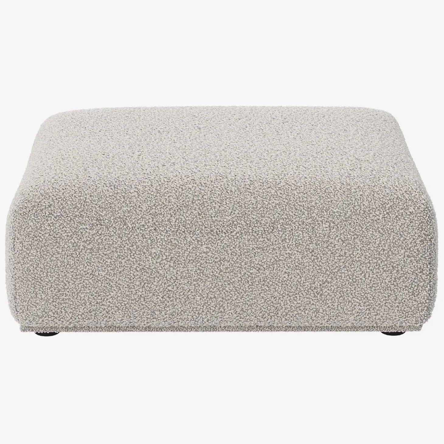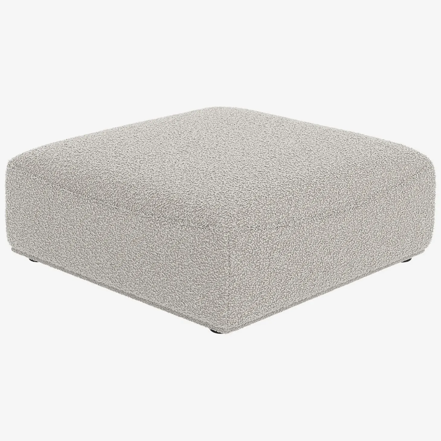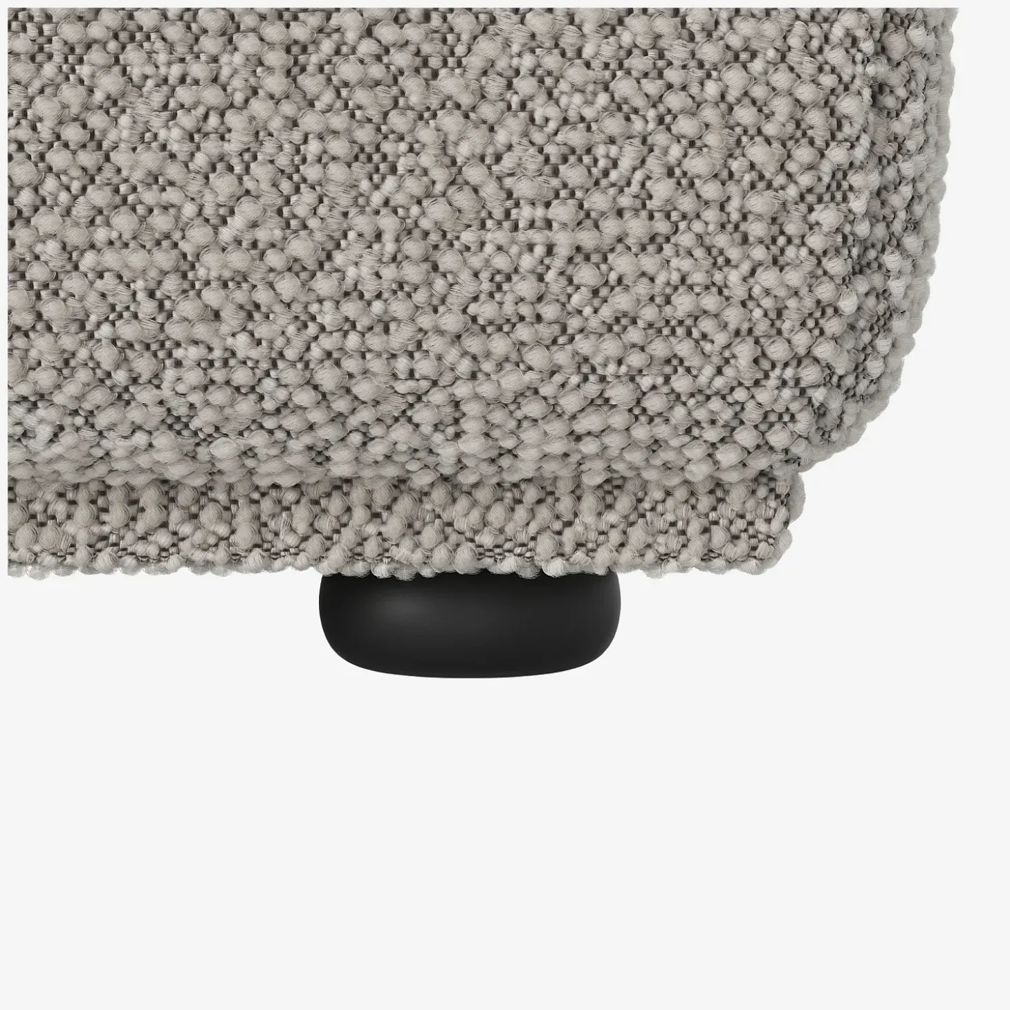 Le repose-pieds Rudolf en tissu bouclette gris perle est un élément discret qui apporte un confort supplémentaire dans le salon.