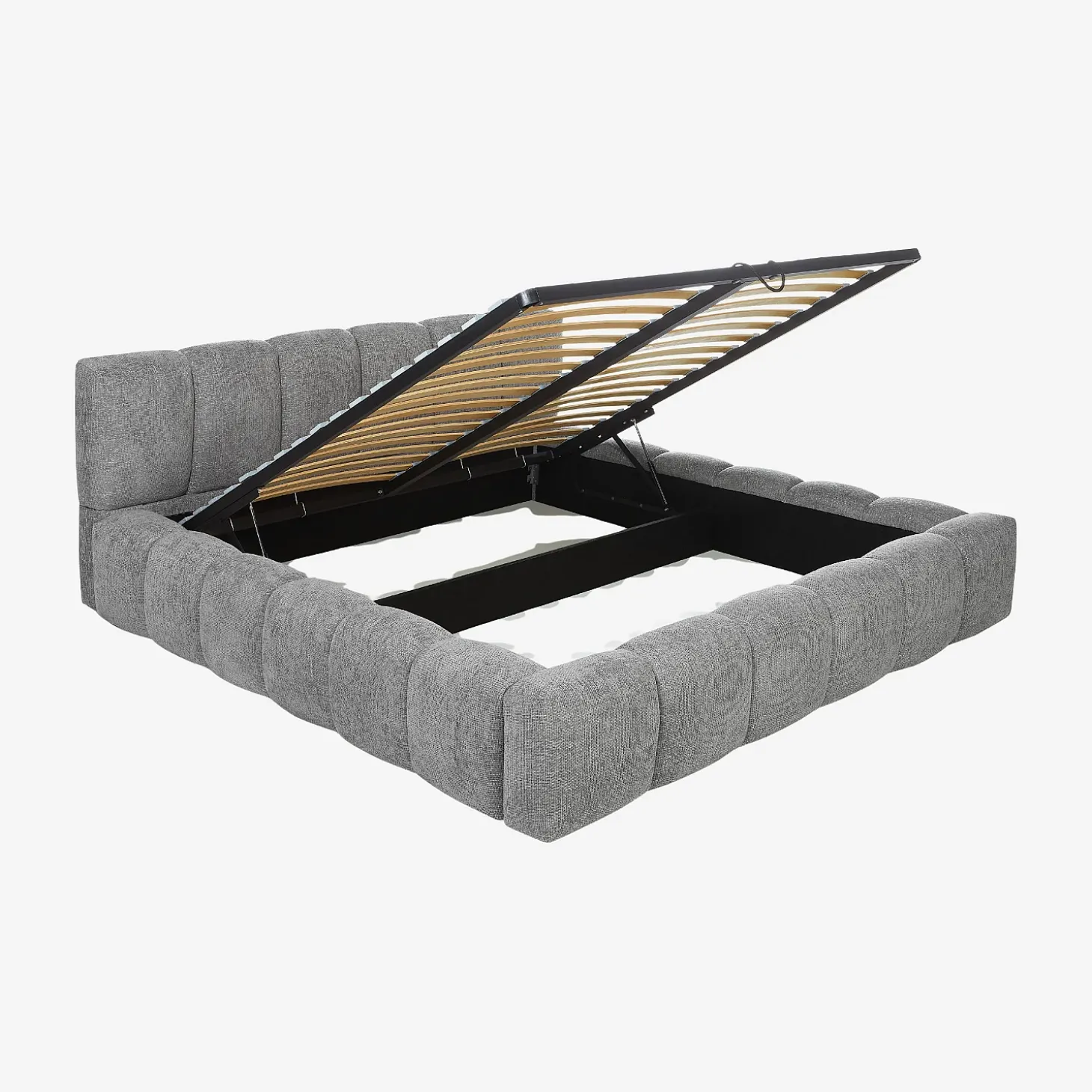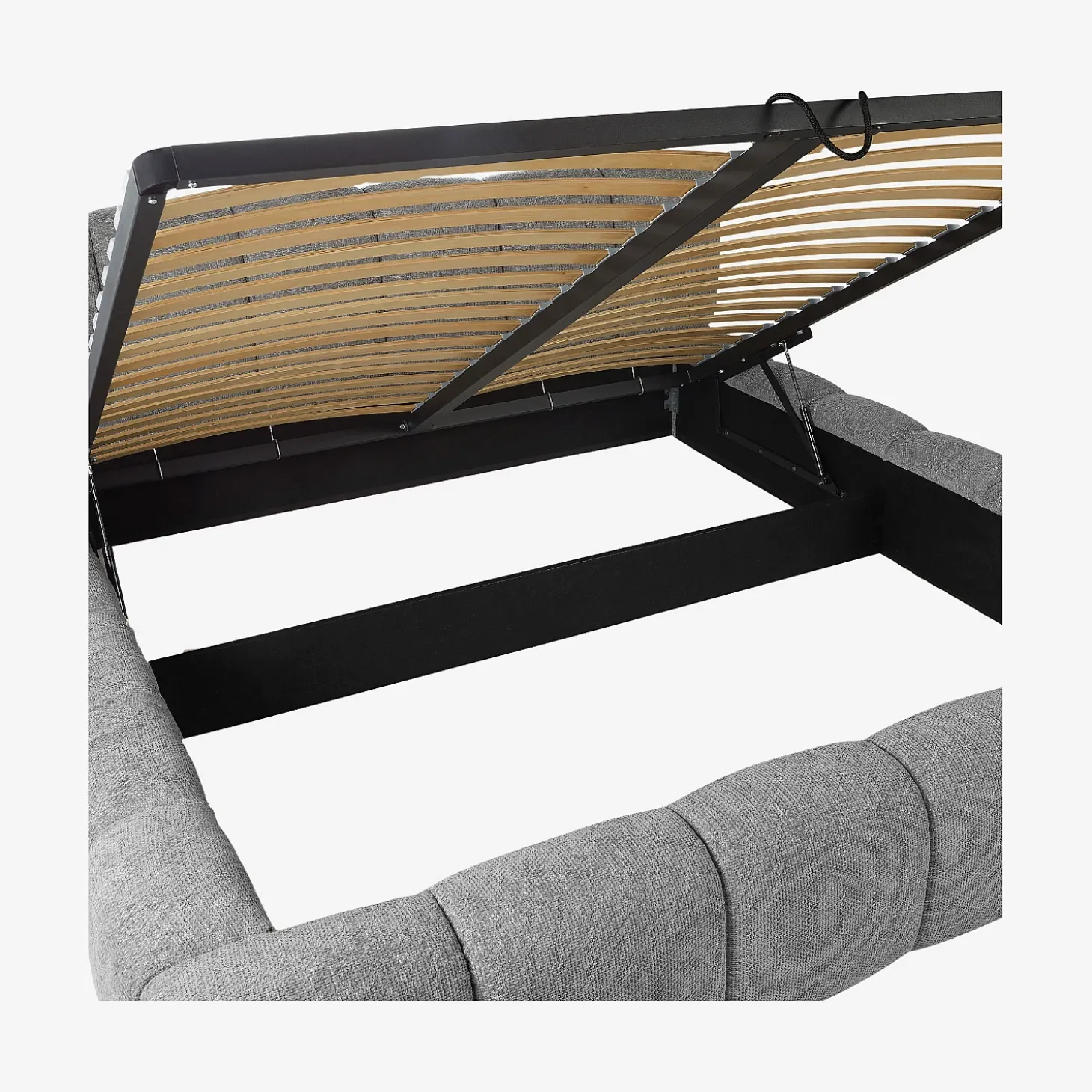 Atout indispensable d’une chambre ordonnée, ce lit cache un rangement astucieux grâce à son coffre. Le mécanisme de vérins à gaz accompagne l’ouverture et la fermeture, garantissant une utilisation facile et sécurisée.