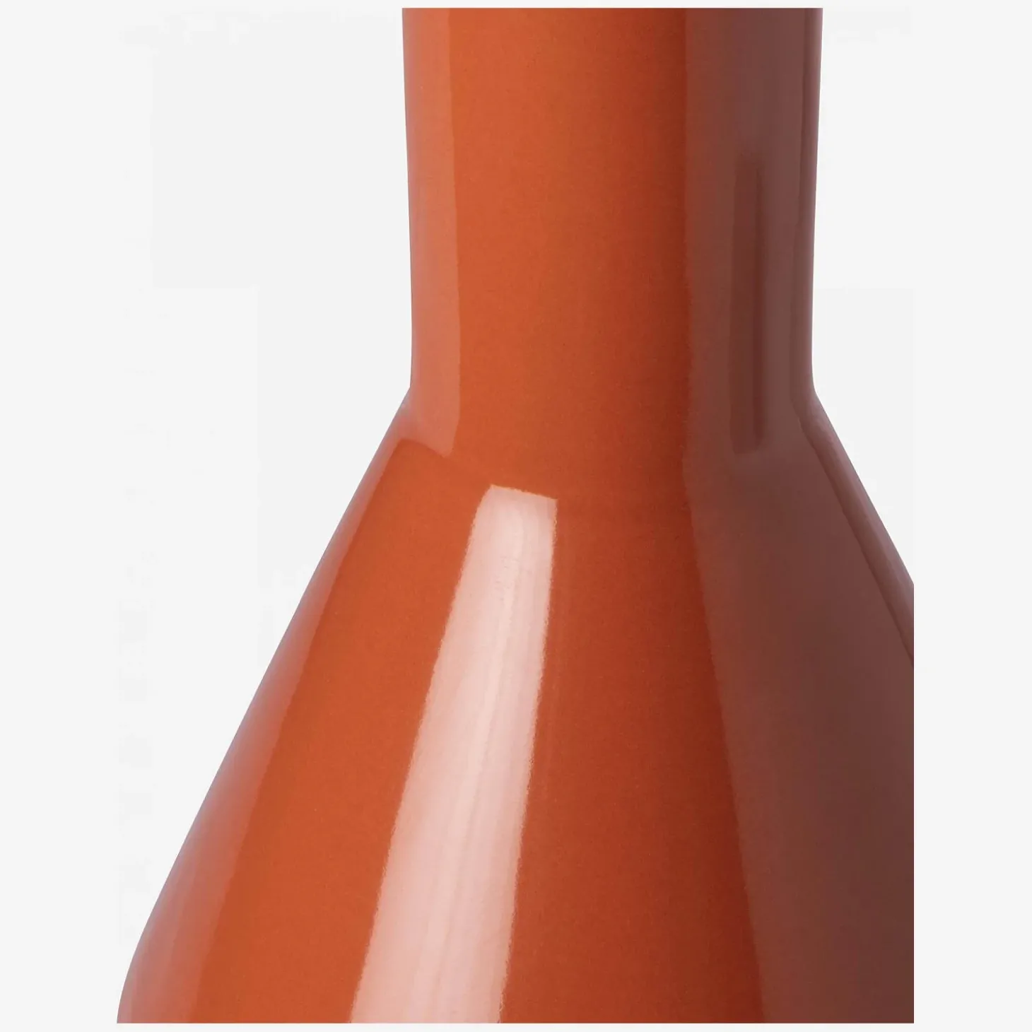 En grès émaillé, le vase Sofia de couleur orange adopte un design épuré et une forme élancée. Son aspect totémique, sa couleur éclatante et son émail brillant en font un objet décoratif remarquable, avec ou sans fleur.