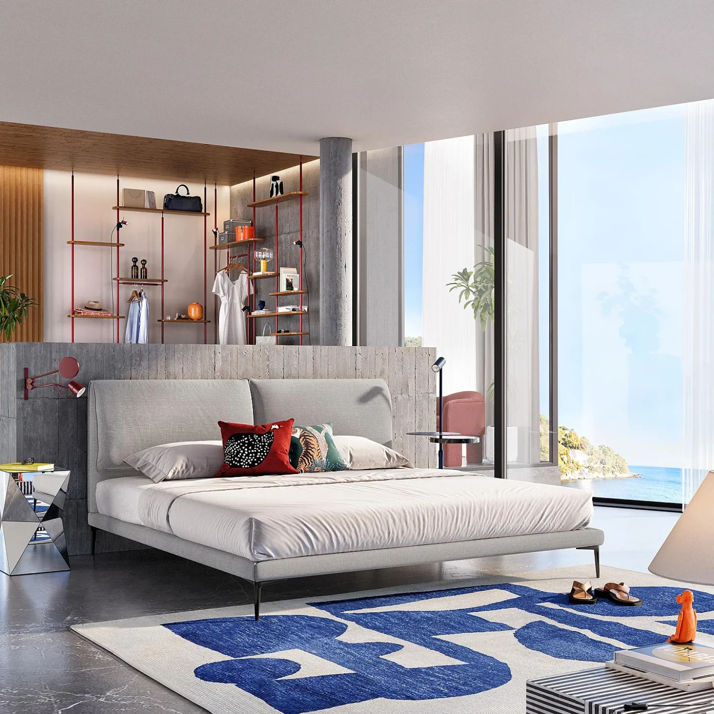 Les lignes épurées et minimalistes du lit Softy instaurent une ambiance loft affirmée dans la chambre, la rendant à la fois design et moderne.