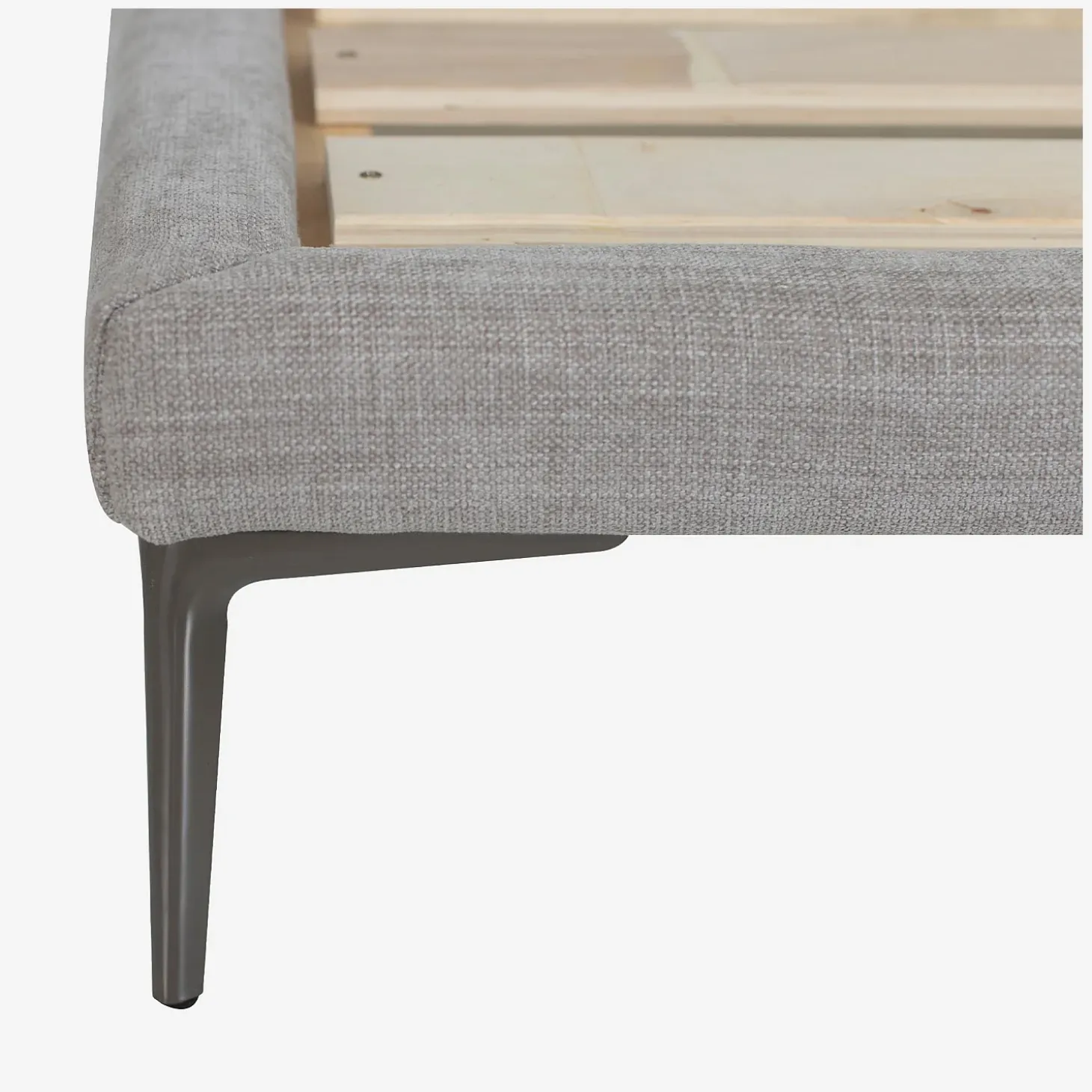 Ses pieds en métal et la finesse de son cadre ajoutent une touche d’élégance et une sensation de légèreté, l’idéal pour une chambre aérée. Son coloris gris perle associé à son look contemporain apporte du caractère à l’espace.