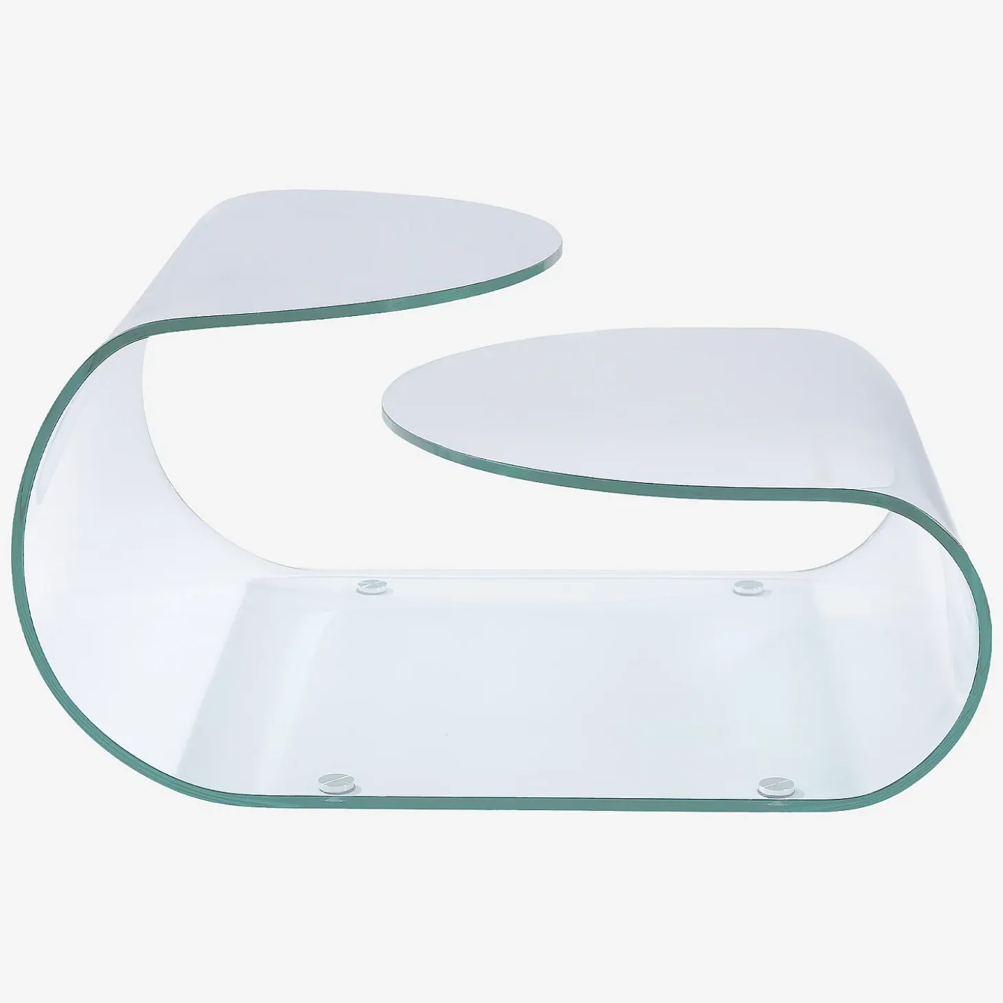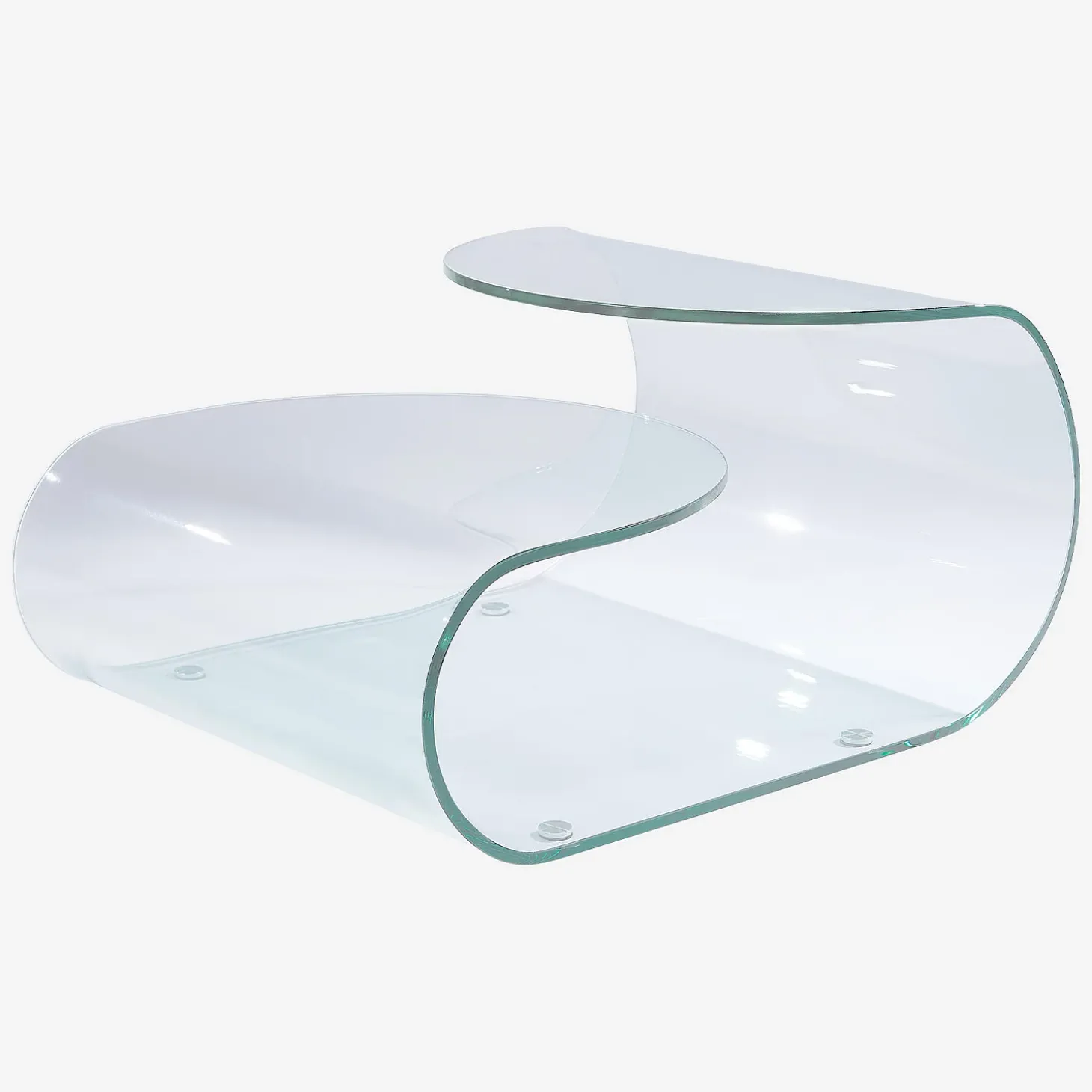 Sa structure en double plateau asymétrique en fait un élément central et une pièce de choix dans l’aménagement de tout espace contemporain. Les courbes arrondies, associées au verre, créent une harmonie parfaite entre transparence, résistance et élégance.