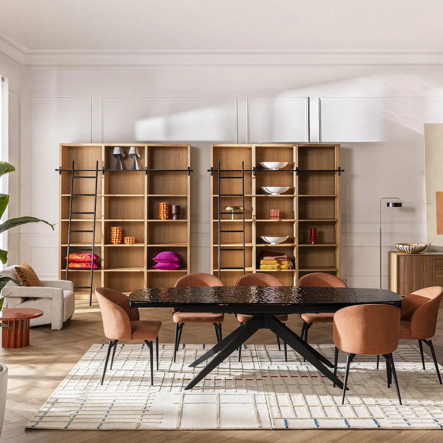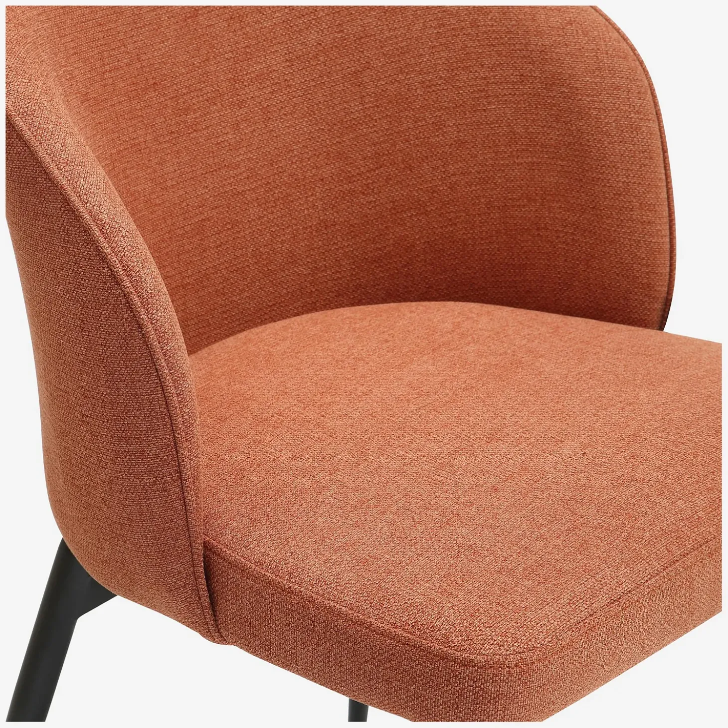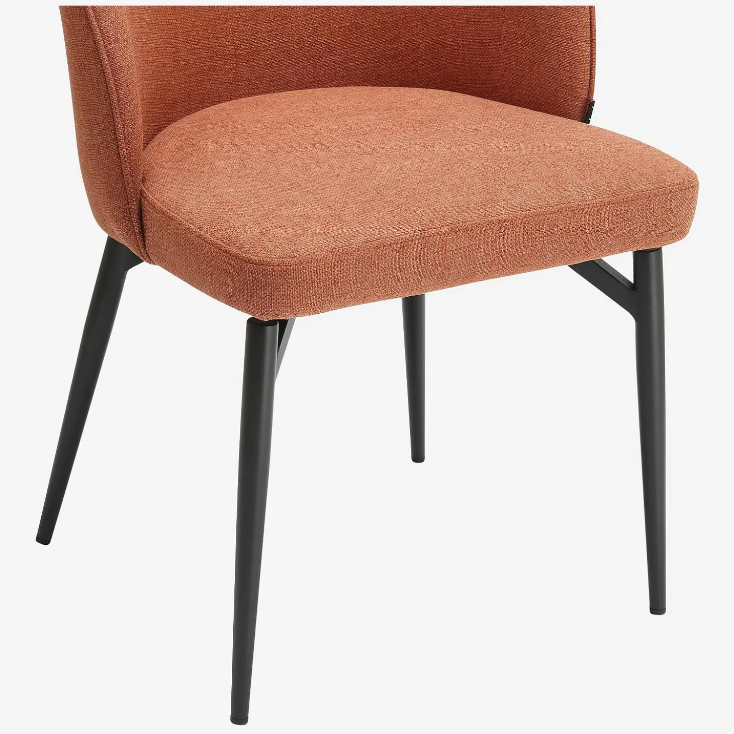 La finesse de ses pieds en métal noir à la découpe travaillée insuffle une impression de légèreté, soulignant parfaitement son siège aux lignes arrondies, adapté aux moments prolongés autour de la table.