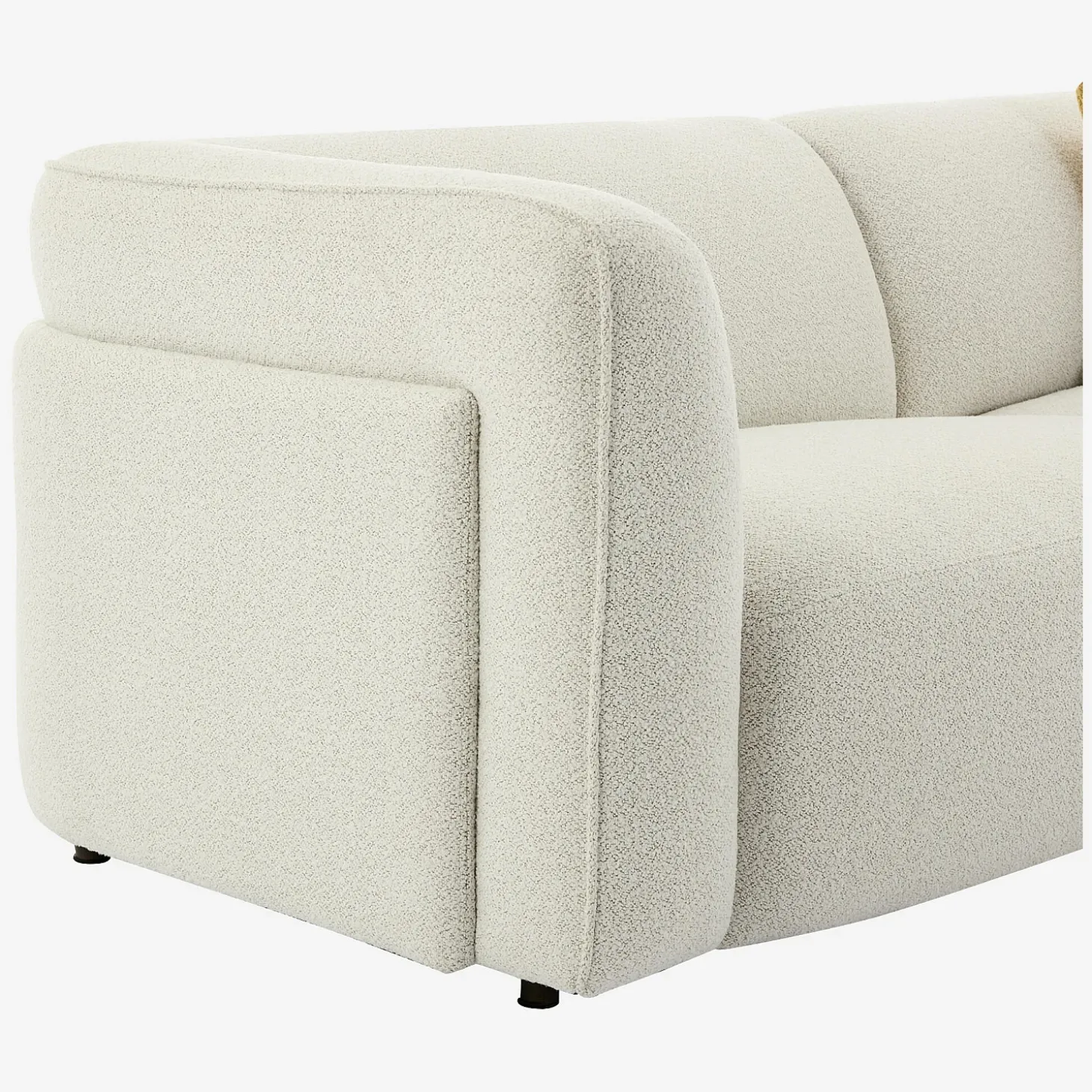 Certaines photos d’ambiance peuvent comporter de légères variations par rapport au modèle réel.Temoli affirme sa présence par ses formes arrondies et son revêtement bouclette. Un canapé 4 places généreusement garni pour créer un cocon accueillant.