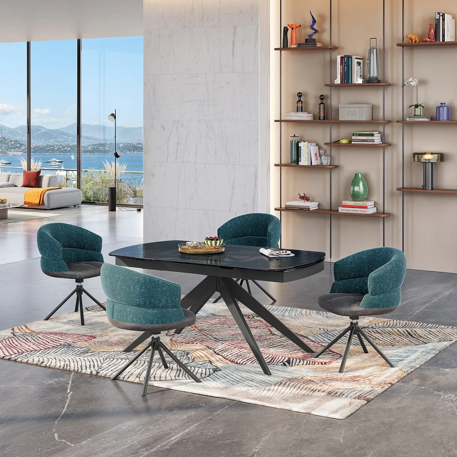 La table Tensie s’invite avec style et prestance dans la salle à manger, insufflant à l’espace une atmosphère à la fois raffinée et résolument moderne.