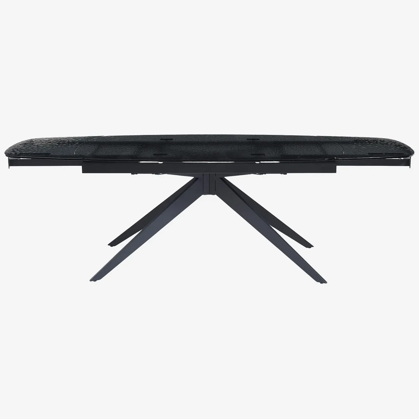 Charge maximale supportée par rallonge : 20 kgTensie séduit par son plateau en verre bullé et son piètement contrasté, mêlant originalité et modernité. Une table extensible au style affirmé, pensée pour recevoir jusqu’à 10 convives avec élégance.