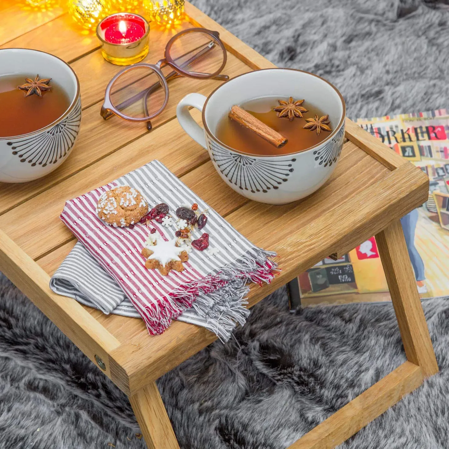 Ce plateau portatif sur pieds en bois donnera un air de fête à tous vos repas. Ultra-pratique, il accompagnera aussi bien vos petits-déjeuners au lit que vos dîners improvisés devant la télé.