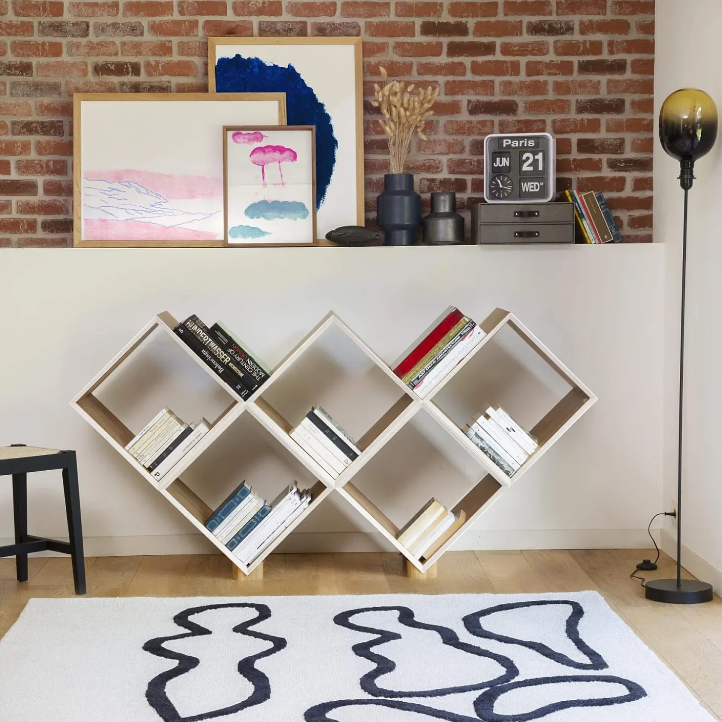 Pieds : chêne massif laqué. (Quercus Spp. ; origine: Allemagne)Tim se distingue par son design modulable et audacieux, une étagère 5 cubes en bois qui allie rangement et décoration.
