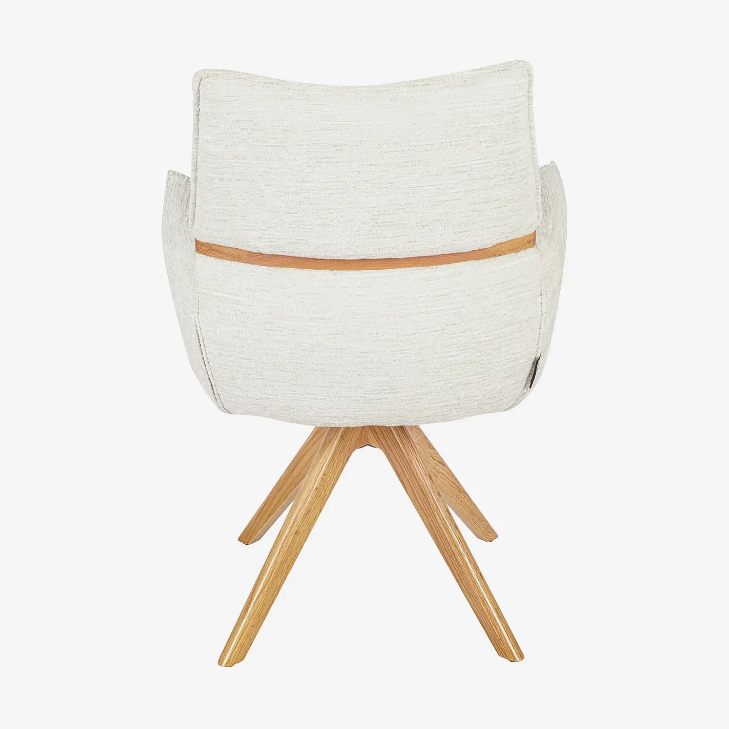 Chêne naturel, revêtement crème et tissu texturé, la chaise avec accoudoirs Timiso est un indémodable qui reste chic et moderne en toutes circonstances.