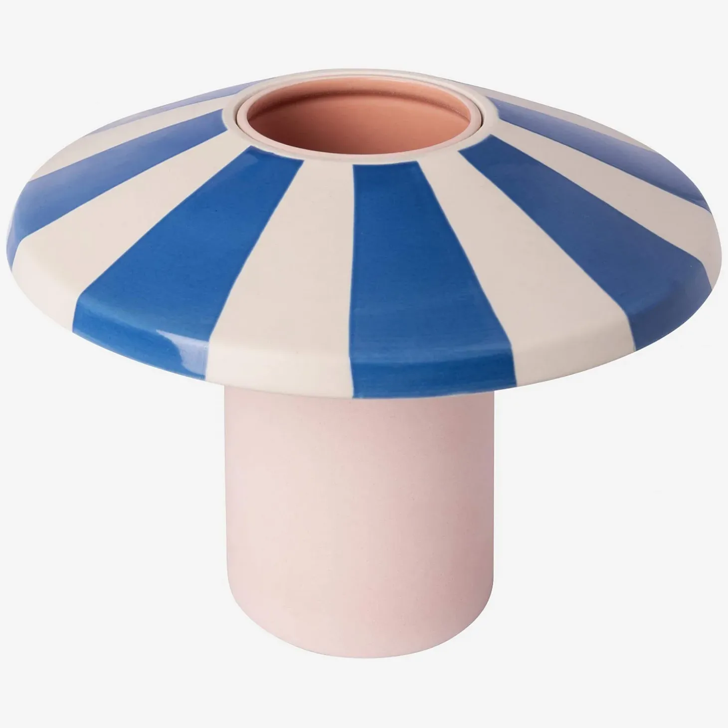 Façonné en grès émaillé, le vase Ulo de 21×19 cm affiche un rendu brillant et nacré. Sa coupelle à rayures bleues est réversible et amovible. Ce vase modulable s’adapte ainsi à vos envies et votre décoration.