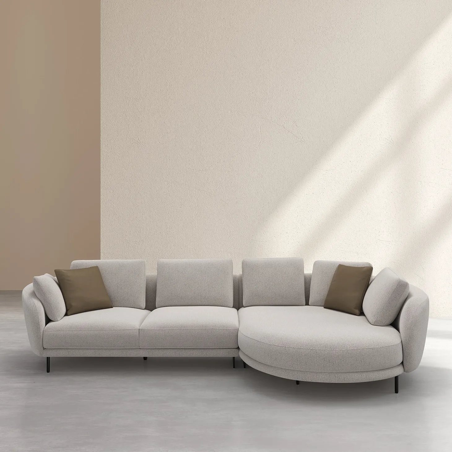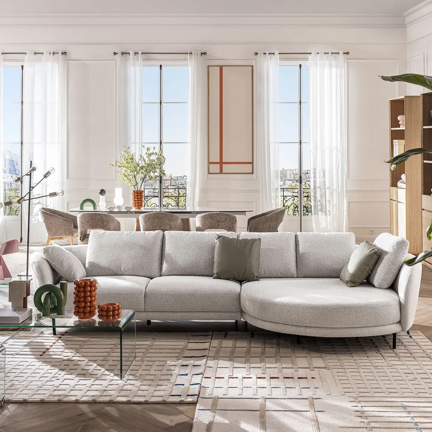 Design, sa méridienne arrondie placée à droite apporte le confort d’un canapé généreux, tout en s’adaptant aux espaces mêmes les plus restreints grâce à ses dimensions compactes.