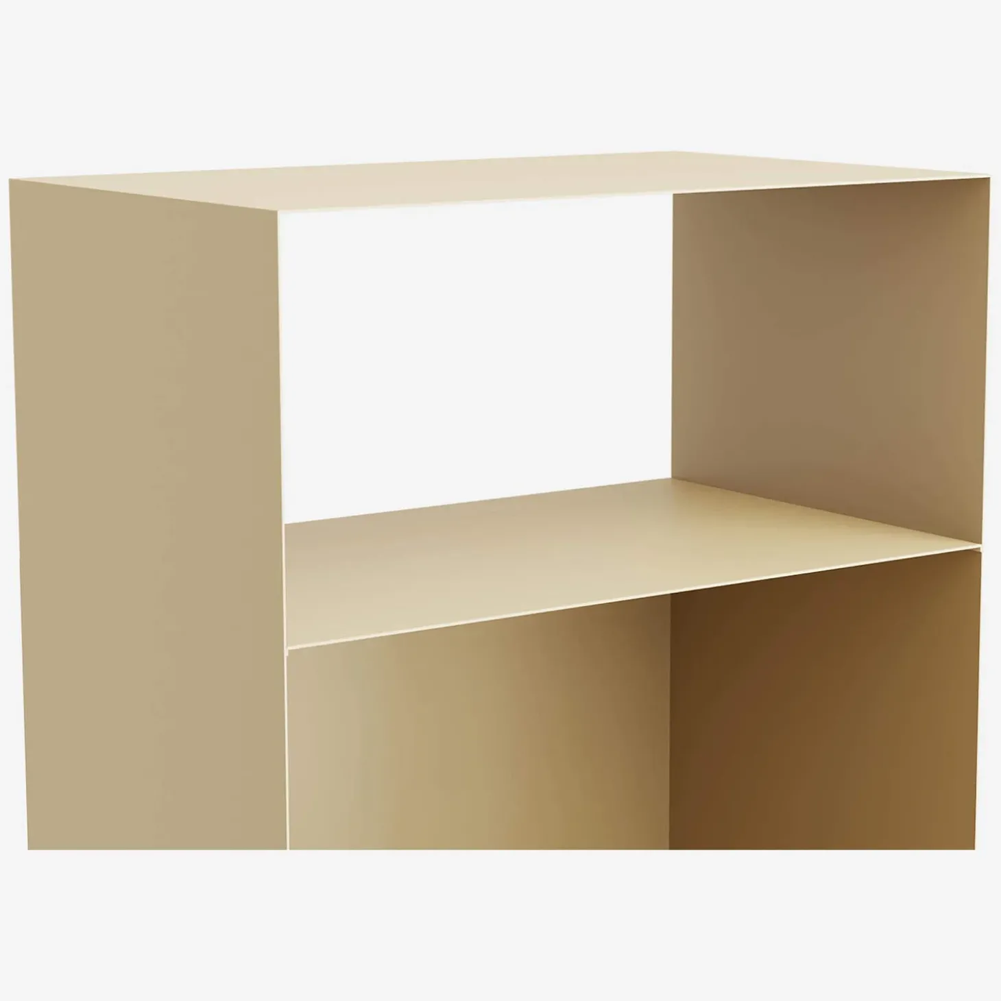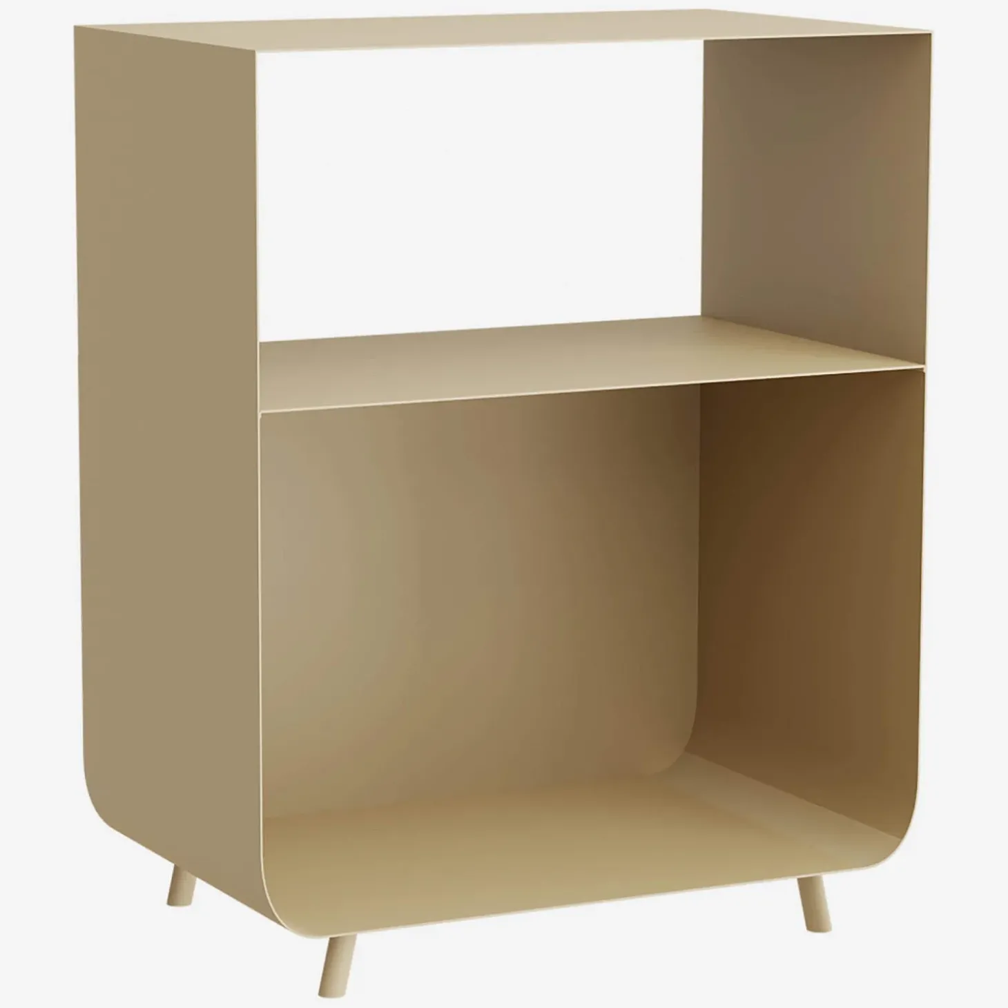 La table de chevet Viktor se compose d’une structure faite à partir d’une seule feuille de métal pliée et d’une étagère. Cette table de nuit possède également 4 pieds évasés.