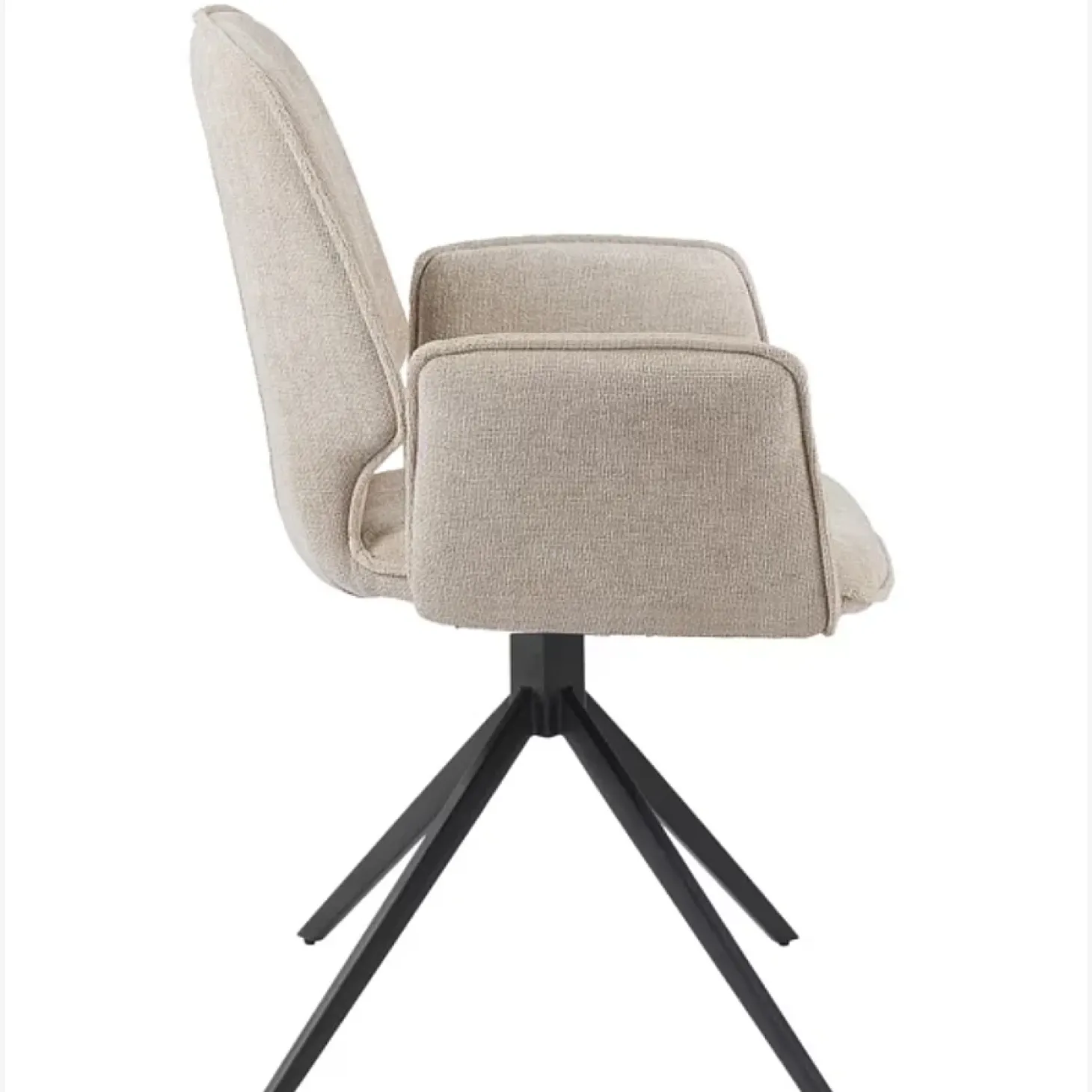 La chaise avec accoudoirs Vince, vendue en lot de 2, accueille les dîners dans un cadre raffiné, et sa silhouette enveloppante permet de s’y installer confortablement. Elle se pare d’un coloris beige sable, apportant de la naturalité et de la luminosité dans un intérieur.