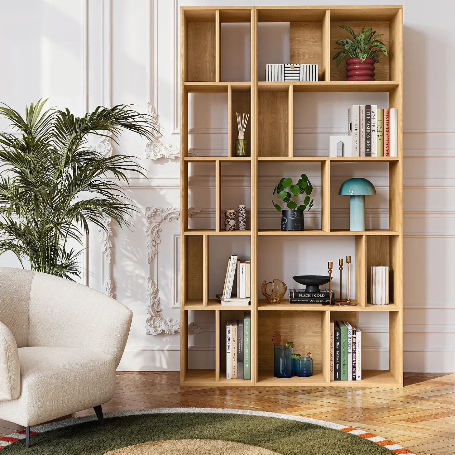 Charge maximale supportée par étagère sur la grande bibliothèque : 14 kgLe jeu des formes géométriques et des espaces ouverts sublime les objets de décoration exposés, pour un rendu design et travaillé.
