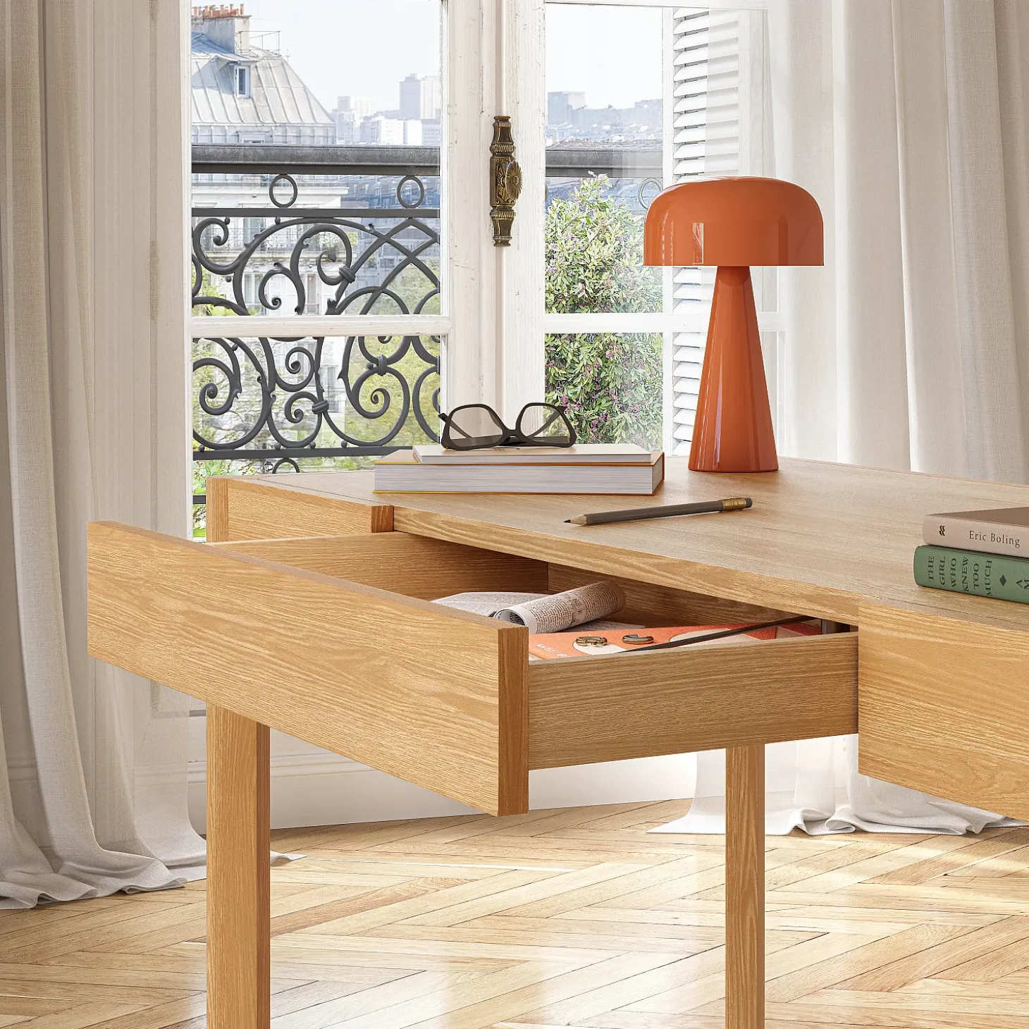 Le bureau Will est une pièce sobre, pensée pour accompagner les moments de concentration avec discrétion.
